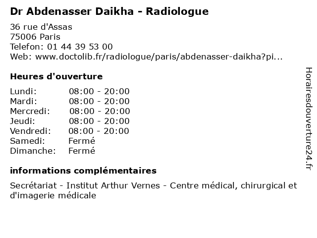 Termes de recherche pour Dr Abdenasser Daikha - Radiologue:paris, dr, radiologue, 75006, abdenasser, daikha |