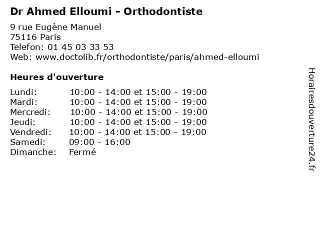 | Lundi | 10:00-14:00 et 15:00-19:00 |