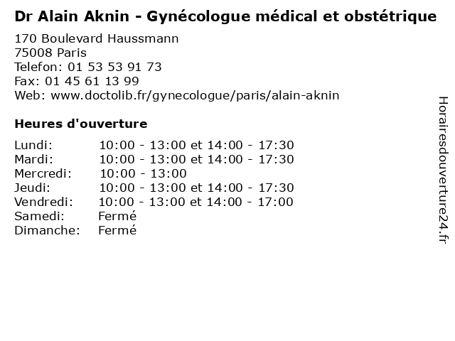 | Lundi | 10:00-13:00 et 14:00-17:30 |