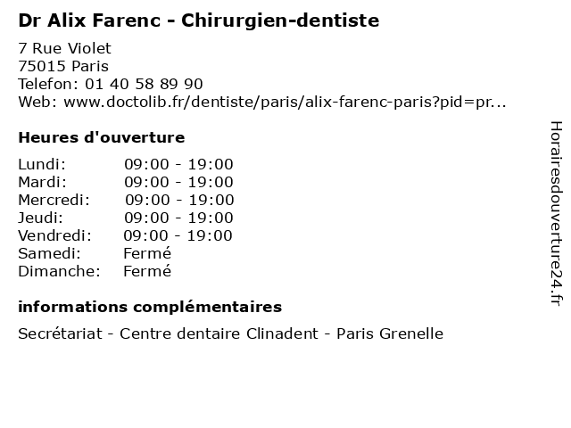 | Samedi | Fermé |