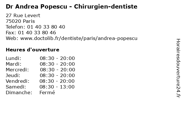 | Lundi | 08:30-20:00 |