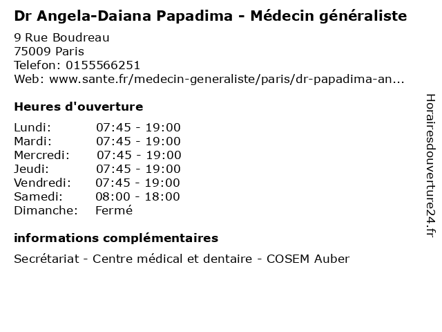 | Lundi | 07:45-19:00 |