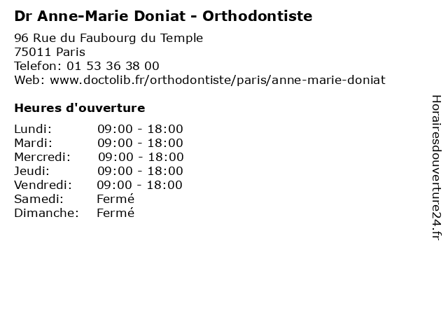 1 Dr Ilana Atlan - Orthodontiste (Distance: 0,00 km) 96 Rue du Faubourg du Temple, 75011 Paris atlan, consultation, docteur, dr, ilana, med, médecin, médecine, orthodontiste, secrétariat, traitement 2 Dr Stéphane Bomtemps - Orthodontiste (Distance: 0,00 km) 96 Rue du Faubourg du Temple, 75011 Paris bomtemps, consultation, docteur, dr, med, médecin, médecine, orthodontiste, secrétariat, stéphane, traitement 3 Dr Marie-Claude Clere - Orthodontiste (Distance: 0,00 km) 96 Rue du Faubourg du Temple, 75011 Paris claude, clere, consultation, docteur, dr, marie, med, médecin, médecine, orthodontiste, secrétariat, traitement 4 Dr Andrea Carlier - Orthodontiste (Distance: 0,00 km) 96-98 Rue du Faubourg du Temple, 75011 Paris andrea, carlier, consultation, docteur, dr, med, médecin, médecine, orthodontiste, secrétariat, traitement 5 Dr Miguel Floria - Orthodontiste (Distance: 1,00 km) 55 Boulevard Voltaire, 75011 Paris dentaire, dentiste, docteur, dr, floria, miguel, orthodontiste 6 Dr Karim Oudihat - Orthodontiste (Distance: 1,67 km) 3 Rue du Maroc, 75019 Paris dr, karim, médecin, médecine, médical, orthodontiste, oudihat, pharmaceutique, traitement |