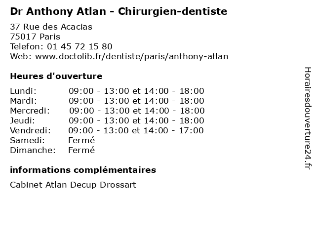 | Lundi | 09:00-13:00 et 14:00-18:00 |