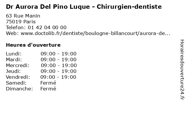 1 Dr Aurora Del Pino Luque - Chirurgien-dentiste (Distance: 11,50 km) 76 Avenue Edouard Vaillant, 92100 Boulogne-Billancourt aurora, chirurgien, del, dentiste, dr, luque, médecin, médecine, médical, pharmaceutique, pino, traitement 2 Dr Aurora Del Pino Luque - Chirurgien-dentiste (Distance: 14,57 km) 48B Boulevard Chilperic, 77500 Chelles aurora, chirurgien, del, dentiste, dr, luque, médecin, médecine, médical, pharmaceutique, pino, traitement 3 Pizzeria Del Gladiatore Subito (Distance: 1,70 km) Rez De Chaussee, 75013 Paris del, gladiatore, pizzeria, restaurants, subito 4 La Bottega del Coiffeur (Distance: 2,48 km) 62bis rue Jean Pierre Timbaud, 75011 Paris bottega, cheveux, coiffeur, colorations, coupe, del, la, soins 5 Villa Del Padre (Distance: 2,55 km) 27 Rue de Rocroy, 75010 Paris del, padre, pizza, restaurante, villa 6 Del Sarte Moto (Distance: 2,84 km) 2 rue André del Sarte, 75018 Paris del, moto, motorcycle dealers, motorcycle repair, sarte |