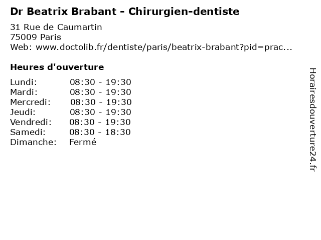 | Lundi | 08:30-19:30 |