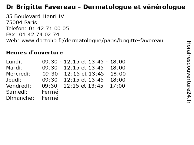 1 Dr Sébastien Fouéré - Dermatologue et vénérologue (Distance: 0,08 km) 41 Boulevard Henri IV, 75004 Paris boutons, dermatologue, docteur, dr, et, fouéré, liason, sébastien, venerologue, vénérologue 2 Dr Noémie Finkel-Tapiero - Dermatologue et vénérologue (Distance: 0,12 km) 31 Rue du Petit Musc, 75004 Paris consultation, dermatologue, docteur, dr, et, finkel, med, médecin, médecine, noémie, secrétariat, tapiero, traitement, vénérologue 3 Dr Jean-Christophe Auffranc - Dermatologue et vénérologue (Distance: 0,44 km) 26 Boulevard Beaumarchais, 75011 Paris auffranc, christophe, dermatologue, dr, et, jean, medecins, medical, vénérologue 4 Bourillon Max Bernier Brigitte (Distance: 0,45 km) 5 Rue De Sevigne, 75004 Paris bernier, bourillon, brigitte, max, restaurants 5 Brigitte Lehmann - Psychologue (Distance: 1,05 km) 22 Rue Debelleyme, 75003 Paris brigitte, cabinets, lehmann, médecins, psychologue, secrétariat, thérapies 6 Dr Brigitte Lutz - Psychiatre (Distance: 1,30 km) 184 Rue du Faubourg Saint-Antoine, 75012 Paris brigitte, consultation, docteur, dr, lutz, med, medecine, medical, médecin, psychiatre, traitement |