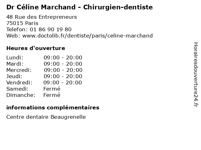 1 Dr Céline Marchand - Chirurgien-dentiste (Distance: 9,03 km) 128 Boulevard Macdonald, 75019 Paris centre, chirurgien, céline, dentaire, dentiste, dr, implantologie, macdonald, marchand, parodontologie 2 Dr. Regis Céline - Ostéopathe (Distance: 0,07 km) 74 Rue de Lourmel, 75015 Paris céline, docteur, dr., medecins, ostéopathe, regis, sante 3 Maître Patricia Le Marchand - Avocate (Distance: 2,17 km) 59 rue Boissière, 75116 Paris avocate, avocats, cabinet, conseils, contentieux, juridique, justice, le, litiges, marchand, maître, patricia, services 4 Ressource - Marchand de Couleurs & Décoration (Distance: 2,40 km) 2-4 Avenue du Maine, 75015 Paris ameublement, couleurs, de, decoratio, décoration, magasins, marchand, ressource 5 Céline Heintz - Ostéopathe (Distance: 2,65 km) 83 Rue du Cherche-Midi, 75006 Paris actes et symptômes, céline, dysfonctionnement temporo-mandibulaire dtm, expertises, heintz, ostéopathe, ostéopathie de la femme enceinte 6 Maître Xavier Marchand - Avocat (Distance: 2,81 km) 26 avenue Kléber, 75116 Paris avocat, droit, marchand, maître, négociation, xavier |