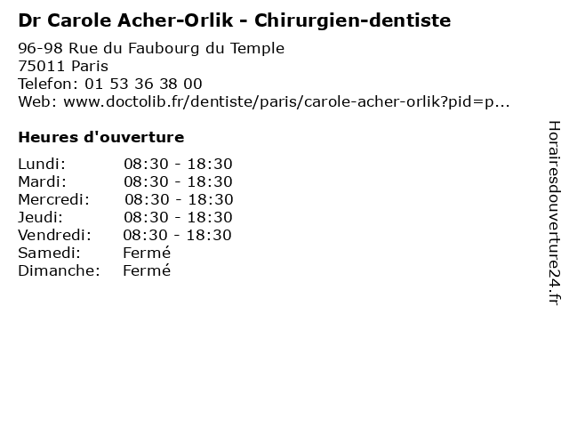 1 Dr Carole Acher-Orlik - Chirurgien-dentiste (Distance: 0,01 km) 96-98 Rue du Faubourg du Temple, 75011 Paris acher, carole, chirurgien, consultation, dentiste, docteur, dr, med, médecin, médecine, orlik, secrétariat, traitement 2 Dr Carole Acher-Orlik - Chirurgien-dentiste (Distance: 3,61 km) 51 Rue du Poteau, 75018 Paris acher, carole, chirurgien, dentiste, dr, médecin, médecine, médical, orlik, pharmaceutique, traitement 3 Dr Carole Acher Orlik - Chirurgien-dentiste (Distance: 2,02 km) 106 Rue Réaumur, 75002 Paris acher, carole, chirurgien, dentiste, dr, médecin, médecine, médical, orlik, pharmaceutique, traitement 4 Anne Carole (Distance: 2,56 km) 76 rue André Joineau, 93310 Pre Saint Gervais anne, buy, carole, property management, rent, sale 5 Anne Carole (Distance: 2,85 km) 42 Boulevard de Charonne, 75020 Paris anne, buy, carole, property management, rent, sale 6 Dr Florence Orlik - Chirurgien-dentiste (Distance: 6,92 km) 30 Rue Olympe de Gouges, 92600 Asnières-sur-Seine chirurgien, consultation, dentiste, docteur, dr, florence, med, médecin, orlik, traitement |