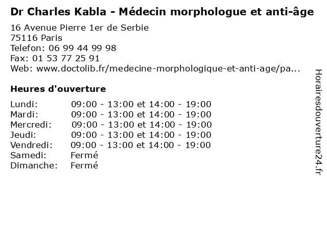 | Lundi | 09:00-13:00 et 14:00-19:00 |