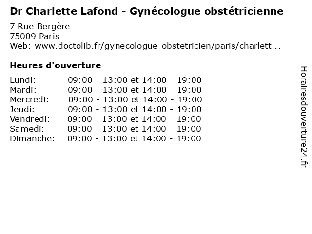 | Lundi | 09:00-13:00 et 14:00-19:00 |