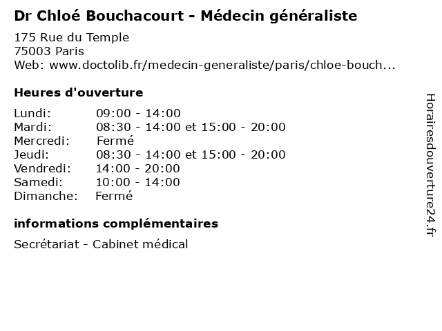 | Mardi | 08:30-14:00 et 15:00-20:00 |