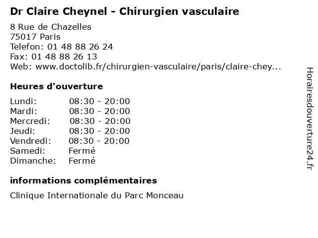 1 Dr Gérard Cohen-Solal - Chirurgien vasculaire (Distance: 0,00 km) 8 Rue de Chazelles, 75017 Paris chirurgien, cohen, consultation, docteur, dr, gérard, med, médecin, médecine, secrétariat, solal, traitement, vasculaire 2 Dr Marc Fitoussi - Chirurgien vasculaire (Distance: 0,00 km) 8 Rue de Chazelles, 75017 Paris chirurgien, dr, fitoussi, marc, médecin, médecine, médical, pharmaceutique, secretariat, secrétariat, traitement, vasculaire 3 Dr Christian Lebard - Chirurgien vasculaire (Distance: 0,03 km) 21 Rue de Chazelles, 75017 Paris chirurgien, christian, dr, lebard, médecin, médecine, médical, pharmaceutique, secretariat, traitement, vasculaire 4 Madame Claire Carli (Distance: 0,64 km) 3 Rue Poncelet, 75017 Paris boucheries, carli, claire, madame, poissonneries 5 Maître Claire Grosleziat - Avocate (Distance: 0,89 km) 37 Rue du Général Foy, 75008 Paris avocate, avocats, cabinet, claire, conseils, contentieux, grosleziat, juridique, justice, litiges, maître, services 6 Dr Claire Deceuninck - Chirurgien-dentiste (Distance: 1,05 km) 3 Boulevard Pereire, 75017 Paris chirurgien, claire, deceuninck, dentiste, dr, médecin, médecine, médical, pharmaceutique, traitement |