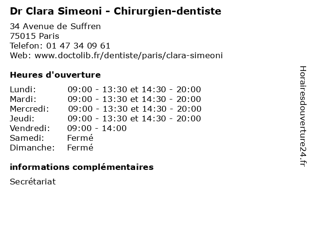 | Lundi | 09:00-13:30 et 14:30-20:00 |