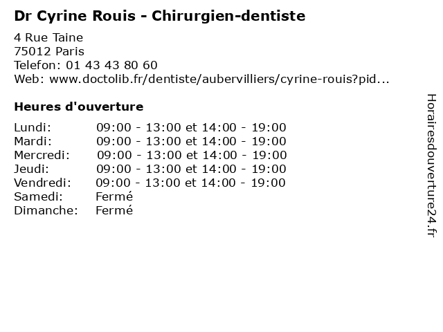 | Lundi | 09:00-13:00 et 14:00-19:00 |