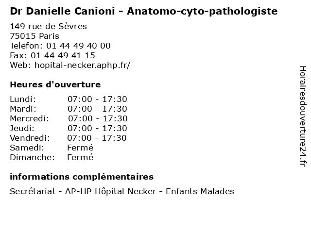 1 Dr Louise Galmiche - Anatomo-cyto-pathologiste (Distance: 0,00 km) 149 rue de Sèvres, 75015 Paris anatomo, consultation, cyto, docteur, dr, galmiche, louise, med, medecine, medical, médecin, pathologiste, traitement 2 Dr Maryse Bonniere-Darcy - Anatomo-cyto-pathologiste (Distance: 0,00 km) 149 rue de Sèvres, 75015 Paris anatomo, bonniere, consultation, cyto, darcy, docteur, dr, maryse, med, medecine, medical, médecin, pathologiste, traitement 3 Dr Danielle Mongin - Pneumologue (Distance: 0,52 km) 178 Rue de Vaugirard, 75015 Paris danielle, docteur, dr, mongin, médecin, pneumologie, pneumologue 4 Dr Danielle Torchin - Médecin généraliste (Distance: 1,03 km) 18 Rue du Général Beuret, 75015 Paris danielle, docteur, dr, generaliste, généraliste, medical, médecin, soin, torchin 5 Dr. Danielle Sarfati-Lasry - Mondocteur (Distance: 1,47 km) 323 rue de Vaugirard, 75015 Paris clinic, danielle, dentist, dr., france, health, lasry, mondocteur, sarfati, service 6 Maître Danielle Elkrief - Avocate (Distance: 1,54 km) 256 boulevard Saint-Germain, 75007 Paris avocate, avocats, cabinet, conseils, contentieux, danielle, elkrief, juridique, justice, litiges, maître, services |