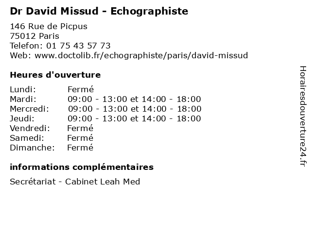 | Mardi | 09:00-13:00 et 14:00-18:00 |