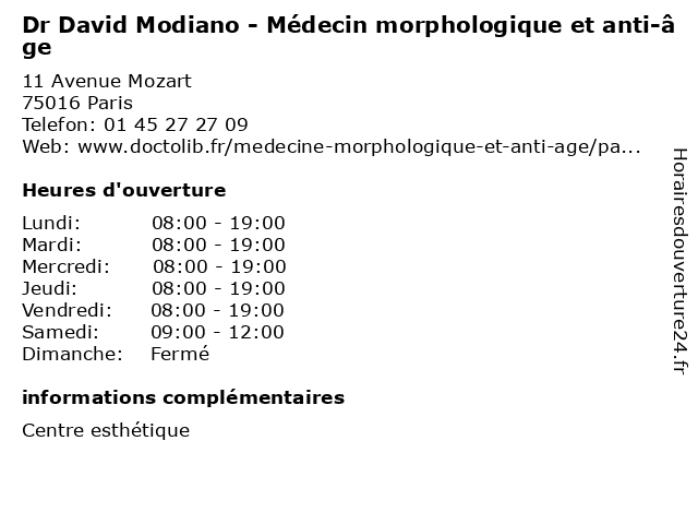 Termes de recherche pour Dr David Modiano - Médecin morphologique et anti-âge:et, david, medecine, medical, secretariat, traitement, age, médecin, dr, pharmaceutique, anti, morphologique, centre médical, modiano |