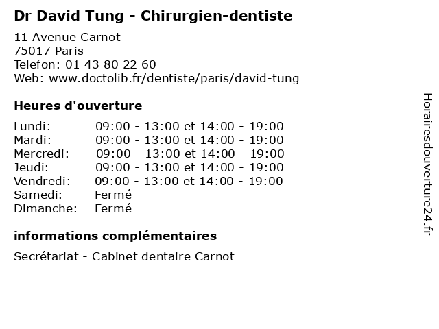 | Lundi | 09:00-13:00 et 14:00-19:00 |