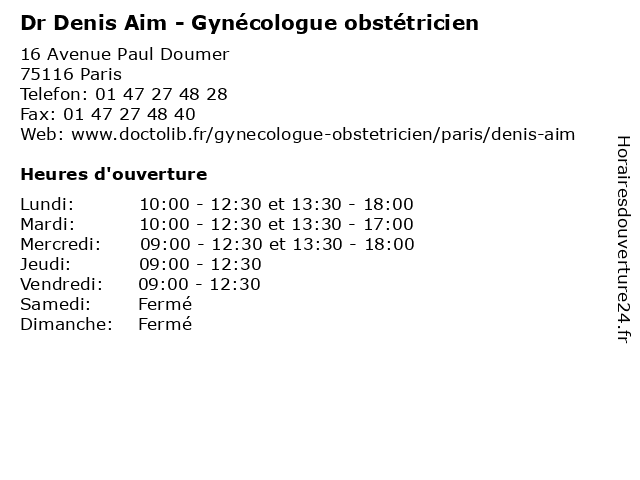 1 Dr Héloïse Gronier - Gynécologue médical et obstétrique (Distance: 0,00 km) 80 Avenue Paul Doumer, 75116 Paris consultation, docteur, dr, et, gronier, gynécologue, héloïse, med, médecin, médecine, médical, obstétrique, secrétariat, traitement 2 Dr Deborah Fedida - Gynécologue obstétricien (Distance: 0,00 km) 80 Avenue Paul Doumer, 75116 Paris deborah, dr, fedida, gynécologue, médecin, médecine, médical, obstétricien, pharmaceutique, secretariat, traitement 3 Maître Denis Laloux - Avocat (Distance: 0,15 km) 29 avenue Georges Mandel, 75116 Paris avocat, avocats, cabinet, conseils, contentieux, denis, juridique, justice, laloux, litiges, maître, services 4 Dr Eric Sedbon - Gynécologue obstétricien (Distance: 0,20 km) 17 Rue Pétrarque, 75116 Paris dr, eric, gynécologue, médecin, médecine, médical, obstétricien, pharmaceutique, secretariat, sedbon, traitement 5 Maître Denis Philippe - Avocat (Distance: 0,20 km) 35 Avenue d’Eylau, 75116 Paris avocat, avocats, cabinet, conseils, contentieux, denis, juridique, justice, litiges, maître, philippe, services 6 Docteur Daniel Zarca - Gynécologue, Chirurgien Cancérologue (Distance: 0,20 km) 17 Rue Pétrarque, 75116 Paris accouchement, cancérologue, chirurgien, daniel, docteur, grossesse, gynécologue, infertilité, médecin, zarca |
