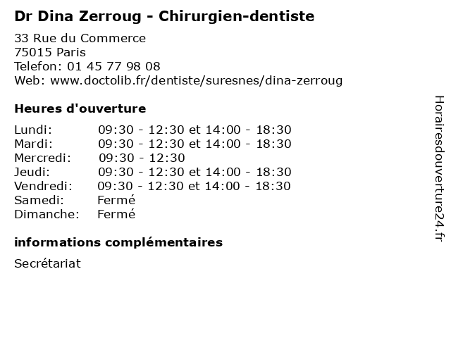 | Mardi | 09:30-12:30 et 14:00-18:30 |