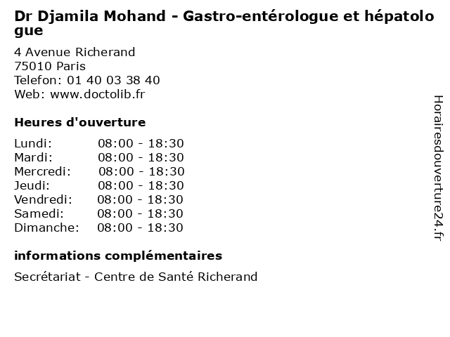| Lundi | 08:00-18:30 |