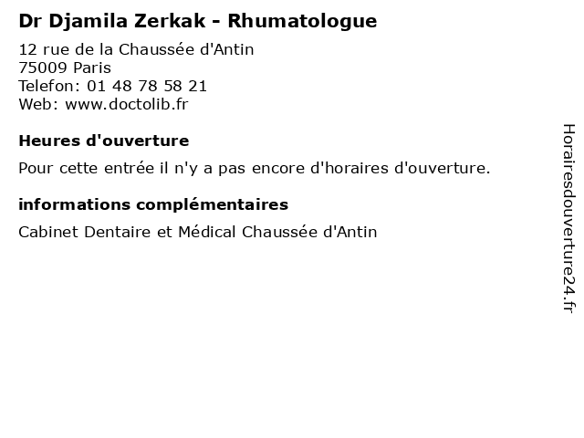 | Appeler Dr Djamila Zerkak - Rhumatologue | |