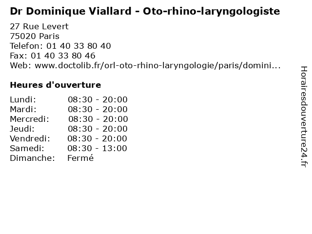 1 Dr Dominique Viallard - Oto-rhino-laryngologiste (Distance: 7,26 km) 40 Rue Miollis, 75015 Paris consultation, docteur, dominique, dr, laryngologiste, med, médecin, médecine, oto, rhino, secrétariat, traitement, viallard 2 Dr Isabelle Souchal Delacour Oto-rhino-laryngologiste (Distance: 0,47 km) 6 bis Rue Clavel, 75019 Paris delacour, dr, isabelle, laryngologiste, médecin, médecine, médical, oto, pharmaceutique, rhino, souchal, traitement 3 Dr Raphaël Hadjedj - Oto-Rhino-Laryngologiste (ORL) (Distance: 0,70 km) 256 Rue de Belleville, 75020 Paris care, clinic, dentist, dr, france, hadjedj, health, laryngologiste, orl, oto, raphaël, rhino, service 4 Dr Thierry Briche - Oto-Rhino-Laryngologue (Distance: 1,25 km) 1 Place Gambetta, 75020 Paris briche, dr, laryngologie, laryngologue, orl, oto, rhino, thierry 5 Dr Georges Tashjian - Oto-Rhino-Laryngologiste (Distance: 1,28 km) 1 Place Gambetta, 75020 Paris consultation, docteur, dr, georges, laryngologie, laryngologiste, médecins, oto, rendez, rhino, santé, sur, tashjian, vous 6 Dr Dominique Bloit - Médecin généraliste (Distance: 1,53 km) 46 Avenue Claude Vellefaux, 75010 Paris bloit, docteur, dominique, dr, generaliste, généraliste, medical, médecin, soin |