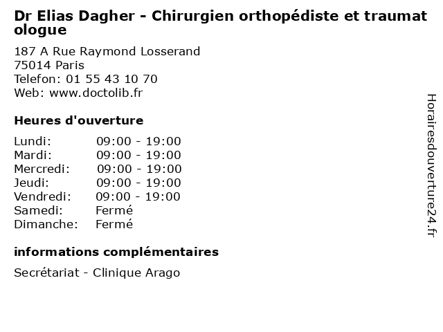 1 Dr Elias Dagher - Chirurgien orthopédiste et traumatologue (Distance: 9,93 km) 49 Avenue du Maréchal Juin, 93260 Les Lilas chirurgien, consultation, dagher, docteur, dr, elias, et, med, médecin, orthopédiste, traitement, traumatologue 2 Dr Julien Roue - Chirurgien orthopédiste et traumatologue (Distance: 0,00 km) 187 A Rue Raymond Losserand, 75014 Paris chirurgien, dr, et, julien, médecins, médicaments, orthopédiste, roue, santé, secrétariat, spécialiste, traumatologue 3 Dr Lan Nguyen - Chirurgien orthopédiste (Distance: 0,81 km) 51 Rue Gambetta, 92240 Malakoff chirurgien, dr, lan, médecin, médecine, médical, nguyen, orthopédiste, pharmaceutique, traitement 4 Dr Jacques Humeau - Chirurgien orthopédiste (Distance: 1,31 km) 37 Rue des Volontaires, 75015 Paris chirurgien, dr, humeau, jacques, médecin, médecine, médical, orthopédiste, pharmaceutique, traitement 5 Pr Christian Mazel - Chirurgien orthopédiste (Distance: 1,79 km) 42 boulevard Jourdan, 75014 Paris chirurgien, christian, consultation, docteur, mazel, med, médecin, médecine, orthopédiste, pr, traitement 6 Dr Olivier Guingand - Chirurgien orthopédiste (Distance: 1,79 km) 42 boulevard Jourdan, 75014 Paris chirurgien, consultation, docteur, dr, guingand, med, médecin, médecine, olivier, orthopédiste, traitement |