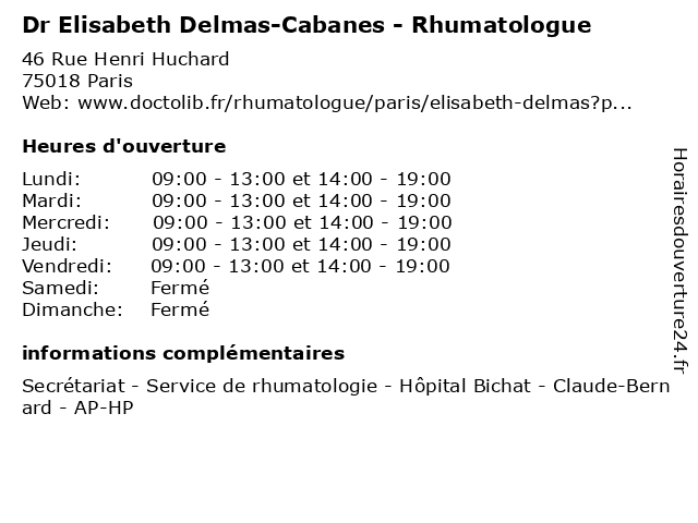 1 Dr Elisabeth Palazzo - Rhumatologue (Distance: 0,00 km) 46 Rue Henri Huchard, 75018 Paris docteur, dr, elisabeth, médecin, palazzo, rhumatologie, rhumatologue 2 Dr Elisabeth Rofe-Sotto - Médecin généraliste (Distance: 0,80 km) 1 Rue Farcot, 93400 Saint-Ouen docteur, dr, elisabeth, generaliste, généraliste, medical, médecin, rofe, soin, sotto 3 Maître Margaux Cabanes - Avocate (Distance: 2,34 km) 54 Rue de Londres, 75008 Paris avocate, avocats, cabanes, cabinet, conseils, contentieux, juridique, justice, litiges, margaux, maître, services 4 Micro-Crèche Les Petites Cabanes (Distance: 2,52 km) 16 Rue De Bretagne, 92300 Levallois-Perret accueil, cabanes, creche, crèche, enfant, garderie, les, micro, petites, éveil 5 Micro-Crèche Les Petites Cabanes - La Cabane de Montholon (Distance: 2,64 km) 8 rue Rochambeau, 75009 Paris and, baby, cabane, cabanes, crèche, crèches, de, garde d'enfants, la, les, les services parentalité, micro, montholon, people, petites, projet social, projet éducatif 6 Maître Christophe Cabanes - Avocat (Distance: 2,65 km) 141 avenue de Wagram, 75017 Paris avocat, avocats, cabanes, cabinet, christophe, conseils, contentieux, juridique, justice, litiges, maître, services  |