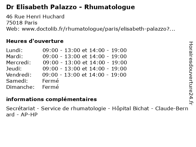 1 Dr Elisabeth Delmas-Cabanes - Rhumatologue (Distance: 0,00 km) 46 Rue Henri Huchard, 75018 Paris cabanes, delmas, docteur, dr, elisabeth, médecin, rhumatologie, rhumatologue 2 Dr Elisabeth Rofe-Sotto - Médecin généraliste (Distance: 0,80 km) 1 Rue Farcot, 93400 Saint-Ouen docteur, dr, elisabeth, generaliste, généraliste, medical, médecin, rofe, soin, sotto 3 Claverie Elisabeth (Distance: 0,81 km) 85 Rue des Rosiers, 93400 Saint-Ouen architecture, art forain, bijoux, claverie, céramiques, elisabeth, mobilier, peintures & arts graphiques 4 Boland Elisabeth (Distance: 0,81 km) 85 Rue des Rosiers, 93400 Saint-Ouen boland, déco., elisabeth, meubles 5 Mace De Gastines Marie-Elisabeth (Distance: 2,73 km) Etage 1Er, 75016 Paris bailleurs, biens, elisabeth, gastines, immobiliers, mace, marie, nra 6 Dr Elisabeth Espagne - Dermatologue et vénérologue (Distance: 5,73 km) 36 Rue d'Assas, 75006 Paris consultation, dermatologue, docteur, dr, elisabeth, elizabeth, espagne, et, med, médecin, médecine, traitement, vénérologue |