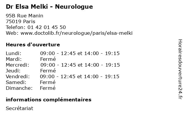 | Lundi | 09:00-12:45 et 14:00-19:15 |
