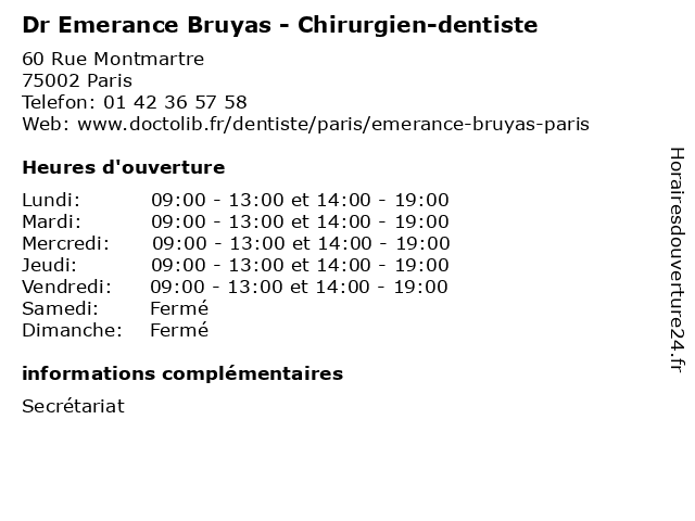 | Lundi | 09:00-13:00 et 14:00-19:00 |