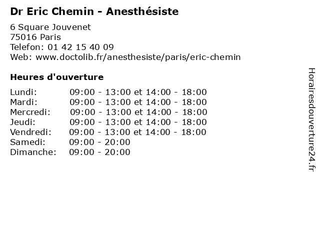| Lundi | 09:00-13:00 et 14:00-18:00 |
