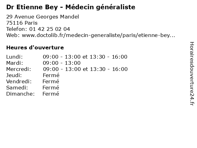 | Lundi | 09:00-13:00 et 13:30-16:00 |