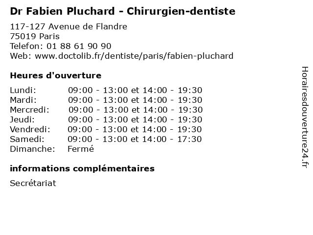| Lundi | 09:00-13:00 et 14:00-19:30 |