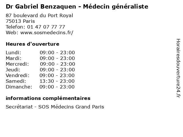 | Vendredi | 09:00-23:00 |