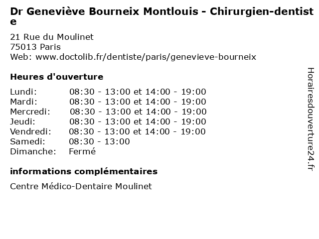 | Lundi | 08:30-13:00 et 14:00-19:00 |