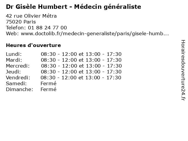 | Lundi | 08:30-12:00 et 13:00-17:30 |