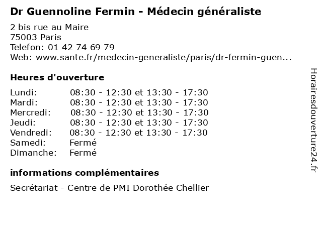 | Lundi | 08:30-12:30 et 13:30-17:30 |