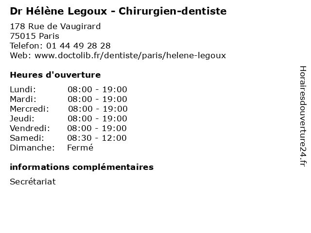 1 Dr Hélène Aelion - Cardiologue (Distance: 0,00 km) 178 Rue de Vaugirard, 75015 Paris aelion, cardiologie, cardiologue, docteur, dr, hélène, médecin 2 Dr Hélène Baptiste - Chirurgien-dentiste (Distance: 0,00 km) 178 Rue de Vaugirard, 75015 Paris baptiste, chirurgie, chirurgien, dentaire, dentiste, dr, hélène 3 Dr Hélène Cohen - Acupuncteur (Distance: 0,19 km) 37 Rue des Volontaires, 75015 Paris acupuncteur, cohen, dr, hélène, médecin, médecine, médical, pharmaceutique, traitement 4 Dr Hélène Cohen - Acupuncteur (Distance: 0,22 km) 37 Rue des Volontaires, 75015 Paris acupuncteur, acupuncturist, clinic, cohen, dr, hélène, medecin 5 Hélène Donze - Psychologue (Distance: 2,29 km) 51 Rue Gambetta, 92240 Malakoff donze, hélène, médecin, médecine, médical, pharmaceutique, psychologue, traitement 6 Maître Anne-Cécile Legoux - Avocate (Distance: 3,32 km) 1 rue Paul Baudry, 75008 Paris anne, avocat, avocate, cécile, droids, justice, legoux, maître |