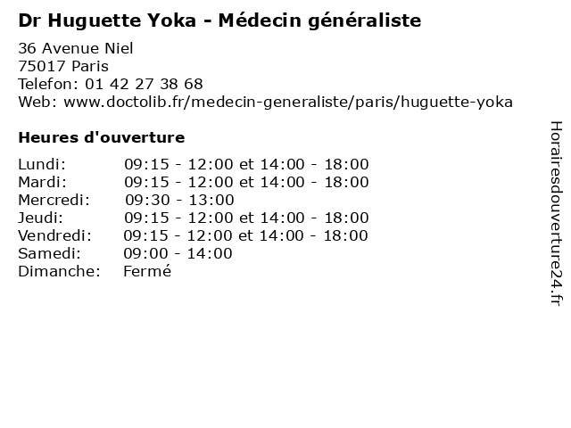 | Lundi | 09:15-12:00 et 14:00-18:00 |
