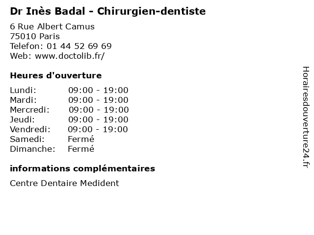 1 Dr Inès Duportail - Chirurgien-dentiste (Distance: 0,71 km) 4 Avenue Richerand, 75010 Paris centre, chirurgien, de, dentiste, docteur, dr, duportail, generaliste, inès, medical, richerand, santé, soin 2 Dr Ines Badal Llorca - Chirurgien-dentiste (Distance: 1,13 km) 51 Boulevard de Strasbourg, 75010 Paris badal, chirurgien, consultation, dentiste, docteur, dr, ines, llorca, med, médecin, traitement 3 Dr Inès Durand - Chirurgien-dentiste (Distance: 2,05 km) 12 Rue Choron, 75009 Paris chirurgien, consultation, dentiste, docteur, dr, durand, inès, med, médecin, traitement 4 Dr Inès Cazauibel - Cardiologue (Distance: 2,35 km) 20 rue Laffitte, 75009 Paris cardiologue, cazauibel, consultation, docteur, dr, inès, med, médecin, médecine, traitement 5 Dr Inès Jesus Fernandes - Chirurgien-dentiste (Distance: 2,57 km) 131 Boulevard Voltaire, 75011 Paris a'dent, centre, chirurgien, dentaire, dentiste, dr, fernandes, implantologie, ines, inès, jesus, parodontologie 6 Maître Inès Rivoallan - Avocate (Distance: 2,80 km) 31-33 Rue de Mogador, 75009 Paris avocate, avocats, cabinet, conseils, contentieux, inès, juridique, justice, litiges, maître, rivoallan, services |