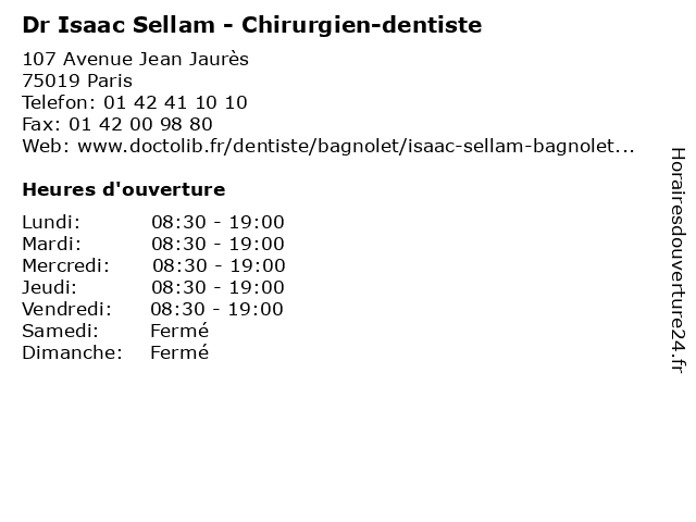 | Lundi | 08:30-19:00 |