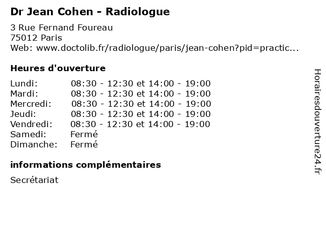 1 Dr Jean Cohen - Radiologue (Distance: 2,81 km) 9 Quai de Bercy, 94220 Charenton-le-Pont bercy, clinique, cohen, de, diagnostique, dr, imagerie, jean, radiologie, radiologue, service, thérapeutique 2 Dr Jean Cohen - Radiologue (Distance: 3,55 km) 104 Avenue Parmentier, 75011 Paris cohen, dr, jean, médecin, médecine, médical, pharmaceutique, radiologue, secretariat, secrétariat, traitement 3 Dr Jean Cohen - Radiologue (Distance: 4,04 km) 41 Rue du Commandant Jean Duhail, 94120 Fontenay-sous-Bois cohen, consultation, docteur, dr, jean, med, médecin, médecine, radiologue, secrétariat, traitement 4 Dr Jean Cohen - Radiologue (Distance: 11,94 km) 85 route de Provins, 94490 Ormesson cohen, consultation, docteur, dr, jean, med, médecin, médecine, radiologue, traitement 5 Dr Jean Cohen - Radiologue (Distance: 12,24 km) 3 bis Avenue Ardouin, 94420 Le Plessis-Trévise cohen, consultation, docteur, dr, jean, med, médecin, radiologue, traitement 6 Dr Jean Cohen - Radiologue (Distance: 12,24 km) 3 Bis Avenue Ardouin, 94420 Le Plessis-Trévise cohen, dr, jean, médecin, médecine, médical, pharmaceutique, radiologue, secretariat, traitement |