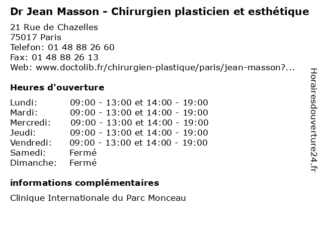 1 Dr Jean Masson - Chirurgien plasticien et esthétique (Distance: 2,06 km) 21 Rue Joubert, 75009 Paris chirurgien, consultation, docteur, dr, esthétique, et, jean, masson, médecin, médecine, plasticien, secrétariat, traitement 2 Dr Tabrez Suffee - Chirurgien plasticien et esthétique (Distance: 0,03 km) 8 rue de Chazelles, 75017 Paris chirurgien, docteur, dr, esthétique, et, médecin, plasticien, suffee, tabrez 3 Dr Yohann Derhy - Chirurgien plasticien et esthétique (Distance: 0,25 km) 4 Avenue Hoche, 75008 Paris chirurgien, consultation, derhy, docteur, dr, esthétique, et, med, médecin, médecine, plasticien, traitement, yohann 4 Dr Yoni Madar - Chirurgien plasticien et esthétique (Distance: 0,25 km) 4 Avenue Hoche, 75008 Paris chirurgien, consultation, docteur, dr, esthétique, et, madar, med, médecin, médecine, plasticien, traitement, yoni 5 Dr Raphaël Nail-Barthelemy - Chirurgien plasticien et esthétique (Distance: 0,25 km) 4 Avenue Hoche, 75008 Paris barthelemy, chirurgien, consultation, docteur, dr, esthétique, et, med, médecin, médecine, nail, plasticien, raphaël, traitement 6 Dr Kevin Haddad - Chirurgien plasticien et esthétique (Distance: 0,50 km) 241 Rue du Faubourg Saint-Honoré, 75008 Paris chirurgien, dr, esthétique, et, haddad, kevin, médecins, plasticien, secrétariat |