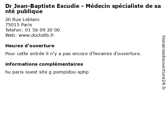 | Appeler Dr Jean-Baptiste Escudie - Médecin spécialiste de santé publique | |