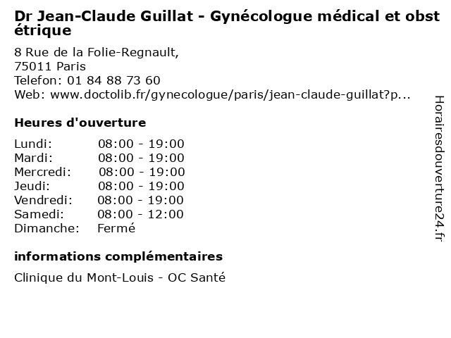 1 Docteur Tallineau Claude- Chirurgie Orthopédique et Traumatologique (Distance: 0,03 km) 8 Rue de la Folie-Regnault, 75011 Paris chirurgie, claude, docteur, et, medecins, orthopédique, sante, tallineau, traumatologique 2 Centre Médical St Maur Timbaud (Distance: 0,23 km) 119 rue Saint Maur, 75011 Paris cabinet, centre, consultation, docteur, générale, maur, médecine, médical, santé, secrétariat, st, timbaud 3 Dr Dominique Borach - Gynécologue-obstétricien (Distance: 0,33 km) 24 rue Léon Frot, 75011 Paris borach, consultation, docteur, dominique, dr, gynécologue, med, médecin, obstétricien, traitement 4 Jean-Claude Biguine (Distance: 0,34 km) 109 Boulevard Voltaire, 75011 Paris beaute, biguine, claude, coiffure, jean 5 Jean-Claude Desa - Hypnothérapeute (Distance: 0,41 km) 27 Rue Godefroy Cavaignac, 75011 Paris claude, desa, hypno, hypnose, hypnothérapeute, jean, sante 6 Dr Jean-Jacques Weitzman - Gynécologue médical et obstétrique (Distance: 0,55 km) 44-50 Rue Pétion, 75011 Paris dr, et, gynécologue, jacques, jean, médical, obstétrique, weitzman |