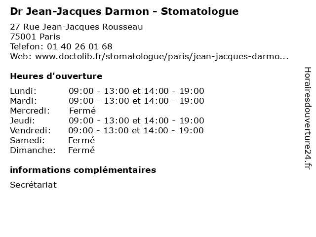 | Lundi | 09:00-13:00 et 14:00-19:00 |