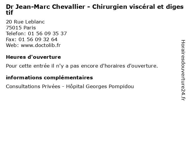 | Appeler Dr Jean-Marc Chevallier - Chirurgien viscéral et digestif | |